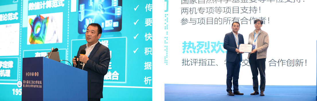 吴恒安教授代表长三角共同体发表了热情洋溢的致辞。他认为,在科技变革加速演进的今天,力学作为基础学科在航空航天、智能制造、新能源等领域的核心支撑作用,并指出长三角地区作为科技创新高地,需进一步加强区域内力学学科资源整合,推动理论研究与产业需求深度对接,为国家重大战略与区域经济高质量发展提供更坚实的科技支撑。