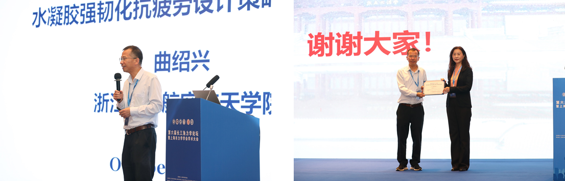 开幕式之后,五个精彩的大会特邀报告引起了与会者的热烈讨论。曲绍兴教授的题为“水凝胶强韧化抗疲劳设计策略”报告中展示了基于海藻糖强氢键的强韧抗疲劳水凝胶设计策略、裂纹尖端软化强韧抗疲劳水凝胶设计策略、调控水含量和水状态的强韧抗疲劳水凝胶设计策略。
