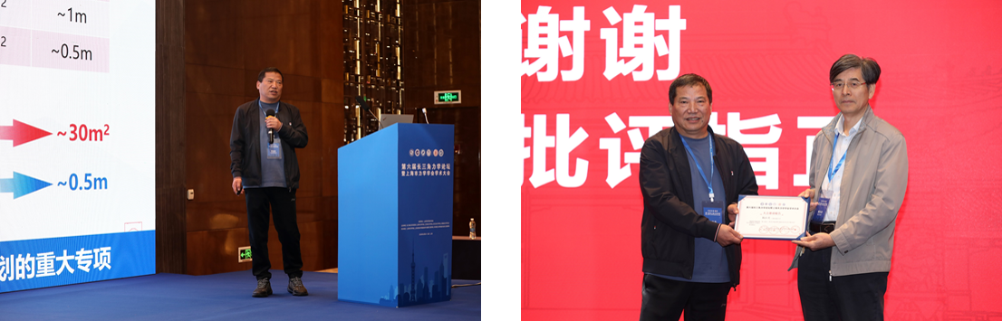 上海交通大学陈巨兵教授的题为“超大范围全场变形测量技术及应用” 首先提出任意位置投影云纹方法,并在此基础上提出了高精度参数化云纹接收系统两级成像模型,将两次成像过程解耦合并独立建模,能够在有不同畸变下实现高精度测量;提出了通用的非线性云纹模型和系统标定方法,能够准确地描述相位—高度映射关系。其次,提出了自适应云纹方法及相关编码方案,能够自动生成自适应云纹,大幅度提高全场测量分辨率和精度。最后提出扫描投影云纹方法及标定方法,能够在保持已有分辨力和精度基础上成倍增加测量范围。最终实现超大范围、高分辨、高精度全场相貌及变形测量。报告结束,各学会理事长分别为报告人颁发大会特邀报告证书。